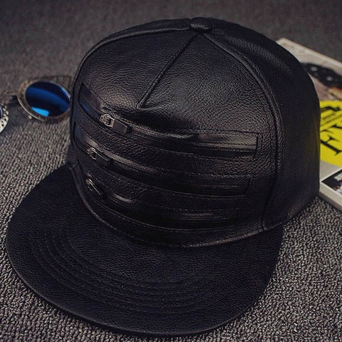 5 panel pu SnapBack gorras de cuero cremalleras en frente hip hop sombreros para niñas y niños