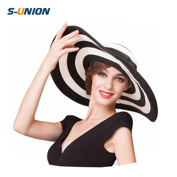 S-UNION אופנה חדשה קיץ ברים גדולים חוף שמש נשים כובעים נשים נשים שחור ולבן כובע קש מרושל